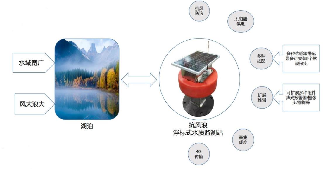 江河、湖泊、水庫等,是水的主要源頭,也是污染物的主要入口,水質(zhì)監(jiān)測(cè)尤為重要。但此類場(chǎng)景復(fù)雜多變,水質(zhì)狀況難以把控,污染程度存在區(qū)域性變化,且系統(tǒng)安裝環(huán)境更為復(fù)雜惡劣。需要多種類型的系統(tǒng)根據(jù)環(huán)境情況進(jìn)行布點(diǎn)搭建。